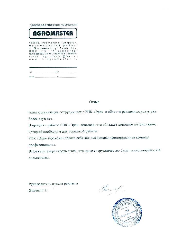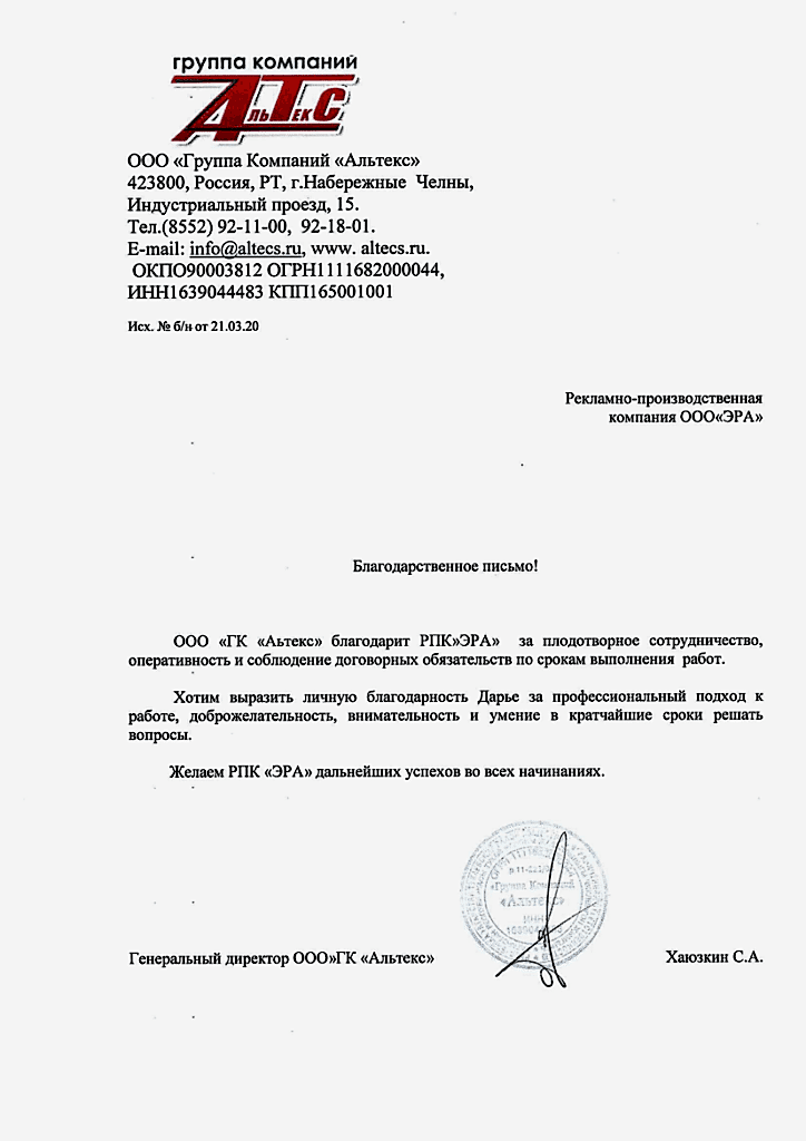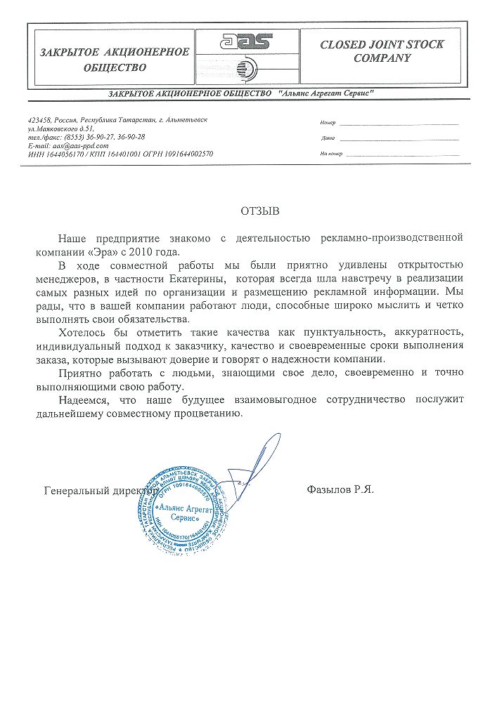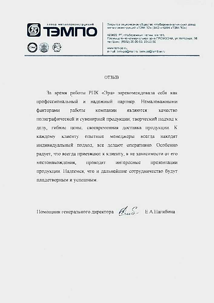 Заказывали продукцию в "ЭРА" несколько раз, все профессионально, своевременно, быстро. Остались только положительные впечатления. Отдельно хочется отметить менеджера Гайсину Регину отзывчива и быстро понимает потребность «Pin Up» ООО "Колуман Рус" обязательно обратимся еще.