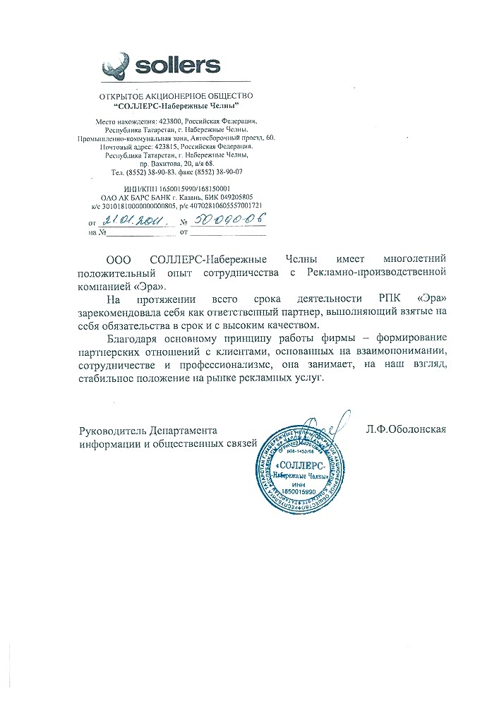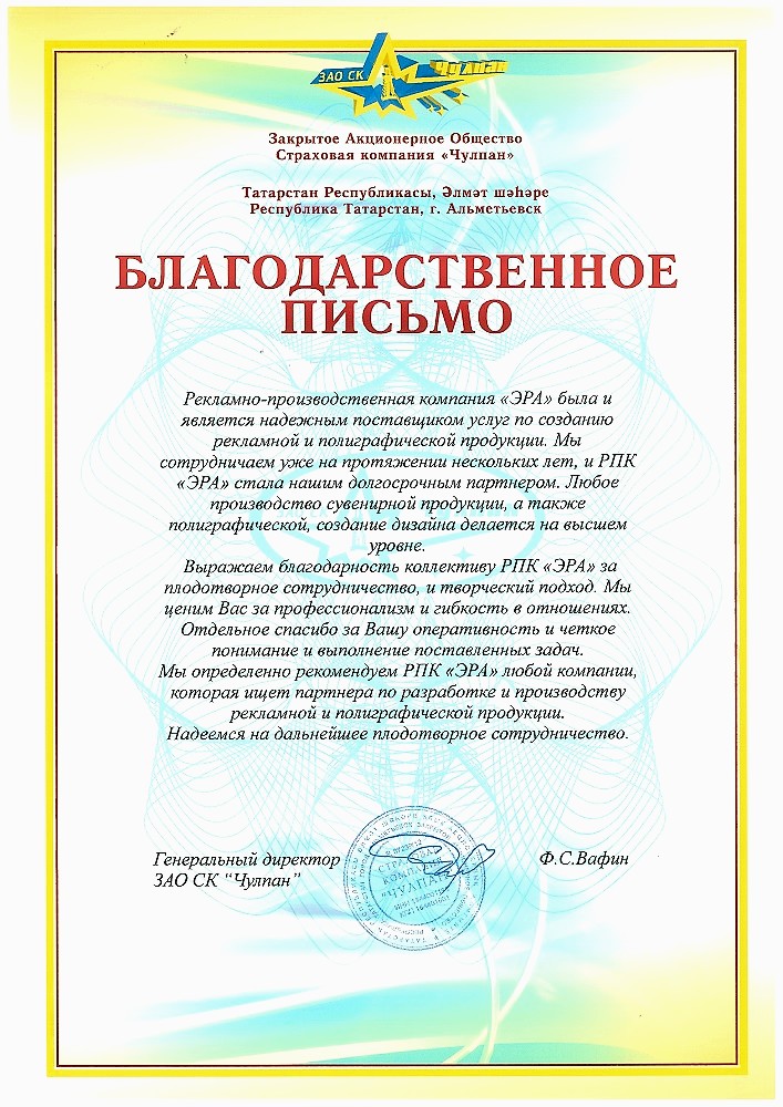 Типография ЭРА - лучшие, с кем мне приходилось работать! Все заказы по рекламной продукции для нашей организации ООО ₸О.С.Л.А. выполняют в кратчайшие сроки! И самое важное - качественно! Спасибо команде ЭРА и отдельное спасибо Надежде Фроловой за оперативность. Надеюсь на дальнейшее плодотворное сотрудничество!