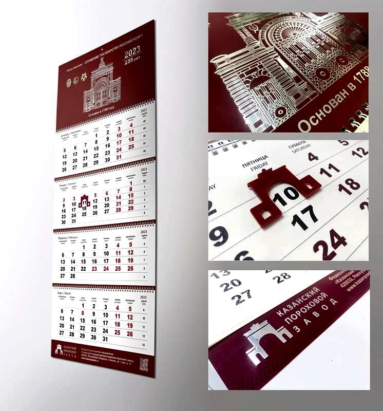 В последнее время практически все без исключения компании заказывают печать квартальных календарей в корпоративном стиле и символике. Такой календарь - это и визитная карточка, и реклама, и прекрасный подарок деловым партнерам и постоянным «Pin Up» Главное, чтобы изготовление квартального календаря и его печать были выполнены качественно и профессионально. Печать индивидуальных квартальных календарей - это недорогой и эффективный способ для правильного представления себя, демонстрации своей серьезности, формирования желаемого имиджа.