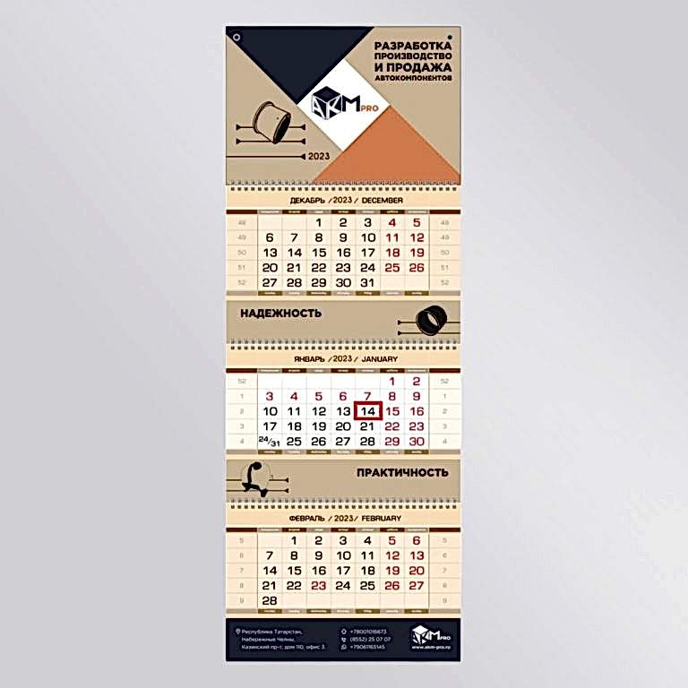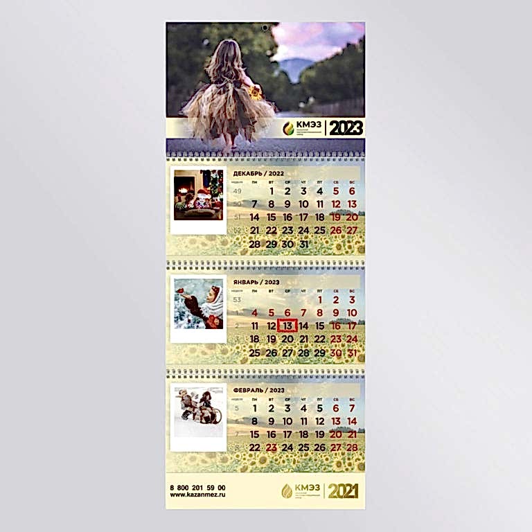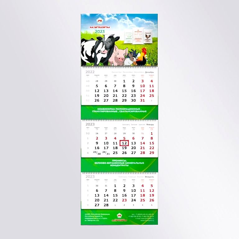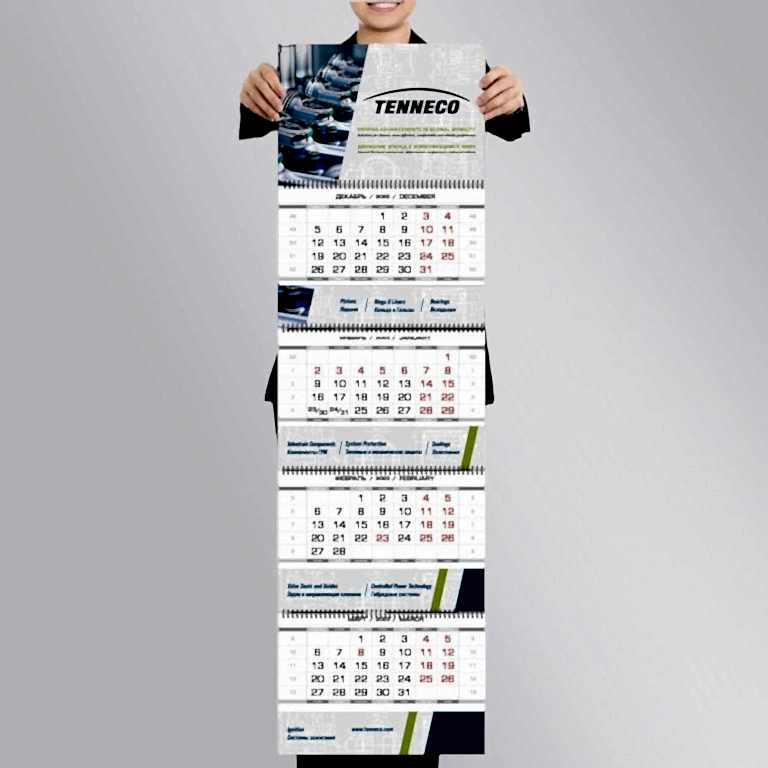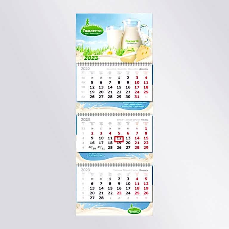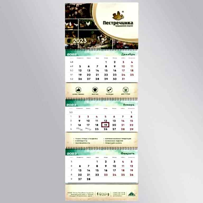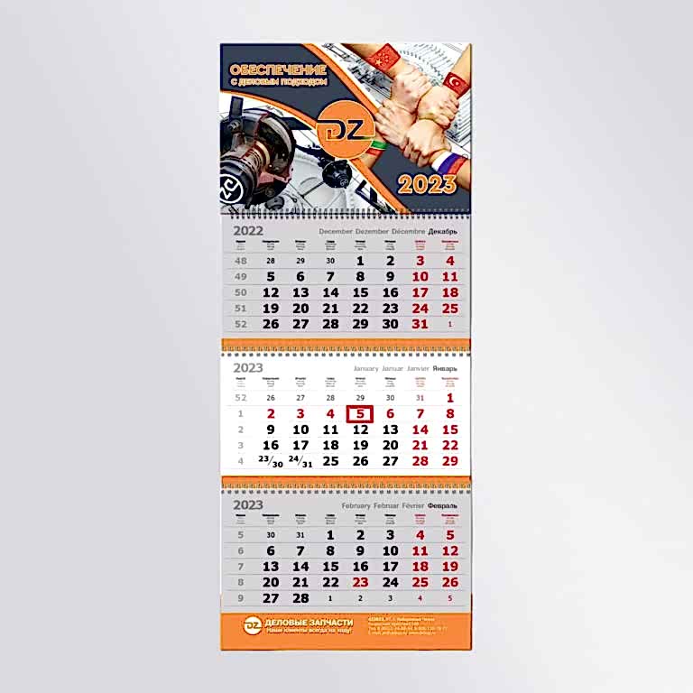 В последнее время практически все без исключения компании заказывают печать квартальных календарей в корпоративном стиле и символике. Такой календарь - это и визитная карточка, и реклама, и прекрасный подарок деловым партнерам и постоянным «Pin Up» Главное, чтобы изготовление квартального календаря и его печать были выполнены качественно и профессионально. Печать индивидуальных квартальных календарей - это недорогой и эффективный способ для правильного представления себя, демонстрации своей серьезности, формирования желаемого имиджа.