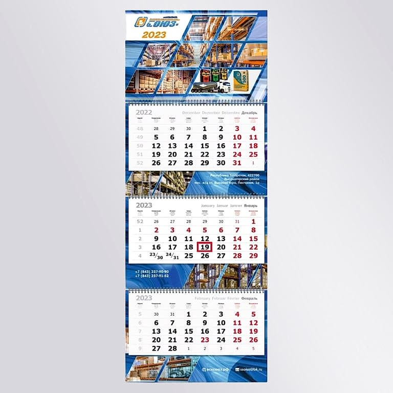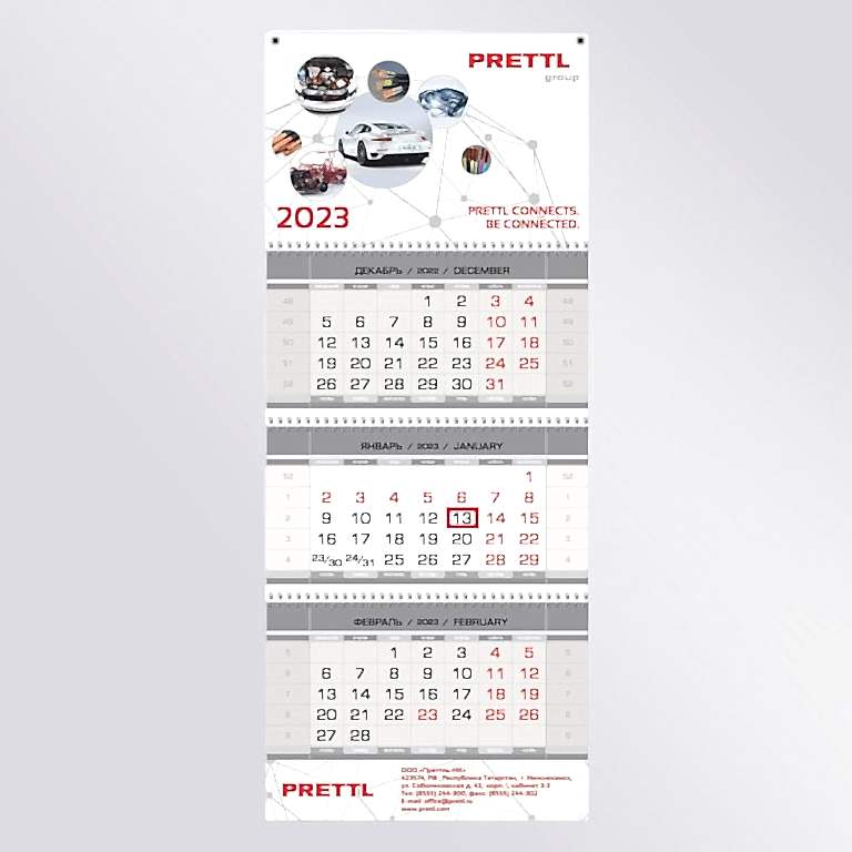 В РПК «ЭРА» производится весь цикл работ по изготовлению квартальных календарей: разработка макета, печать, сборка на «Pin Up» - это позволяет нашим клиентам экономить время и деньги.